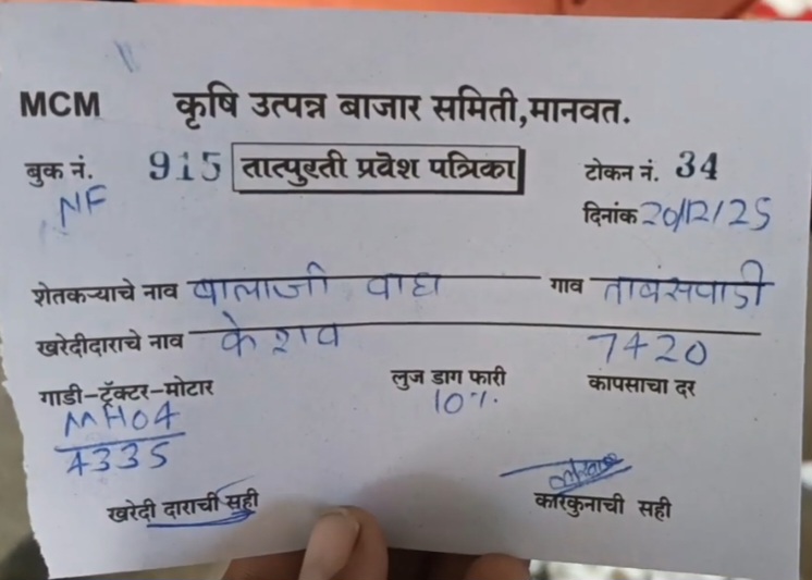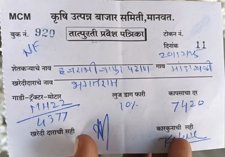मानवत कापूस बाजारभाव पावत्यासहित भावात मोठी वाढ पहा.
